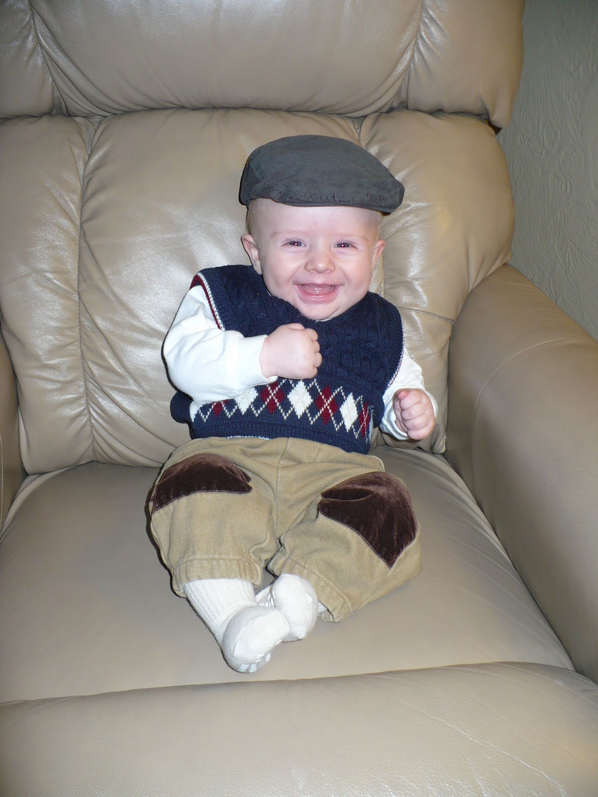 The biggest new development from this past month is that he is getting his first two teeth. The bottom two middle teeth are poking out a little. So far we have only had one rough night because of teething where we were up in the middle of the night for a few hours. Besides that, he is doing pretty good. He just drools like a faucet. :-) Sleeping could definitely be better as the little guy still gets me up 3, sometimes 4 times a night, but I just try not to think about it too much and I tell myself often that it can't last forever.
