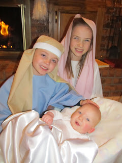 Micah was baby Jesus in the Nelson family Christmas play. Here he is with Mary and Joseph.